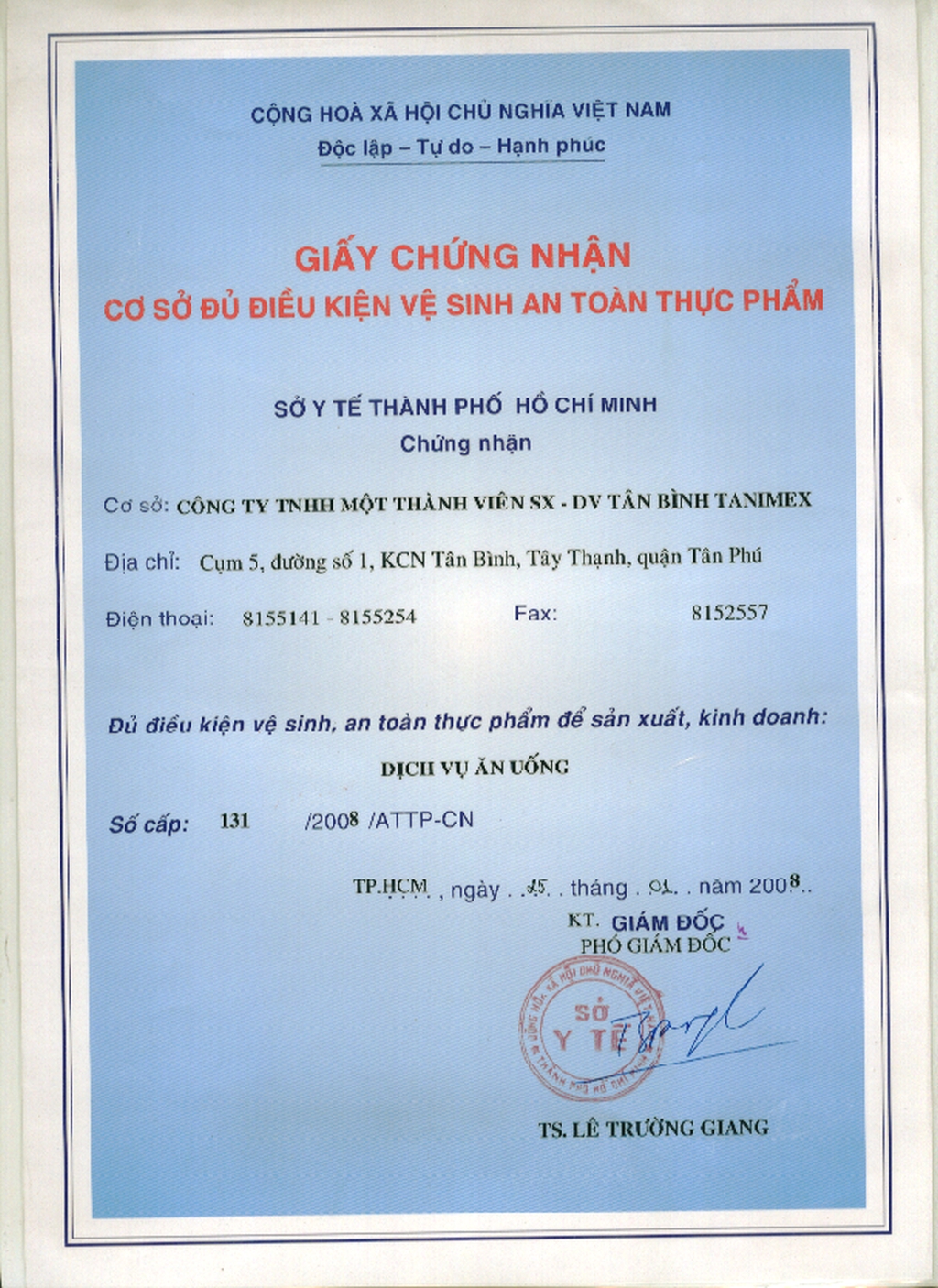 Địa chỉ: Cụm 5, Đường Số 1, KCN Tân Bình, P Tây Thạnh, Q Tân Phú.